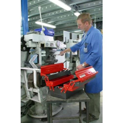Cette boîte à outils métallique BT.11GPB de Facom bénéficie d’un grand volume de rangement. L’écartement des poignées donne instantanément accès à toutes les cases. De plus, le fond des compartiments recouvert de mousse.