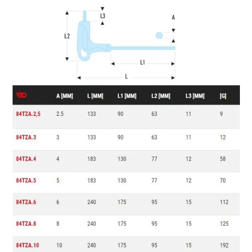 La clé mâle poignée en ”P” 6 pans métriques 84TZA est fabriquée à partir d’un acier au silicium carbone pour une durée de vie plus longue. Elle dispose d’une poignée souple pour plus de confort et d’une extrémité courte pour ses couples ou serrages élevés.