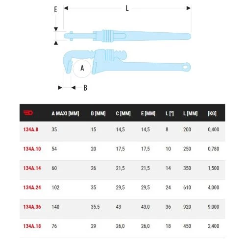 La clé modèle Américain fonte 134A de la marque Facom est dotée d’un corps en fonte, d’une mâchoire mobile en acier forgé, d’un mors fixe interchangeable en acier traité.