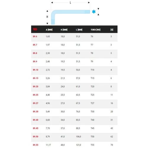 | Taille | T6, T7, T8, T9, T10, T15, T20, T25, T27, T30, T40, T45, T50, T55 |