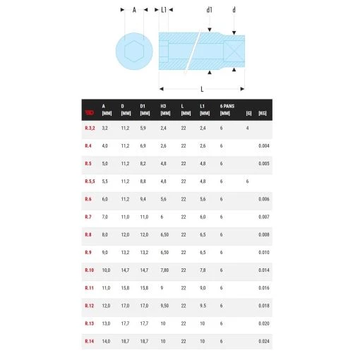 Douilles longues dédiées aux accès en puits ou filetages longs.
