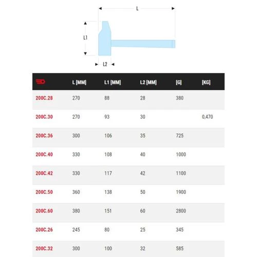 Ce marteau mécanicien rivoir manche graphite 200C dispose d’un manche de sécurité ergonomique à noyau graphite.