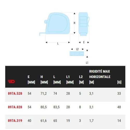 Le mètre à ruban Facom 897A bénéficie d’un revêtement à très haute durabilité, résistant aux impacts et aux conditions d’utilisation intensives. Il est également doté d’un boîtier en caoutchouc garantissant une forte durabilité.