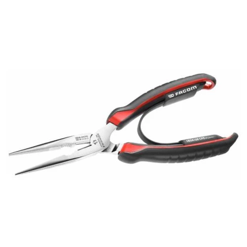 Cette pince à becs droits 1/2 ronds 185A.20CPE est finement striée, avec un serre-tube et un coupe-fil lateral.