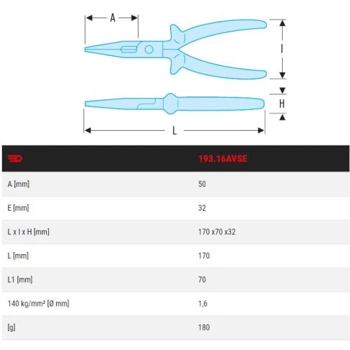 La pince à becs demi-ronds isolée série VSE 193.16AVSE de Facom est une pince à tête brunie, robuste et pratique. C’est un modèle à coupe fil unique, disposant d’un intérieur de mâchoires strié pour une bonne préhension et d’une isolation à code couleur de sécurité.