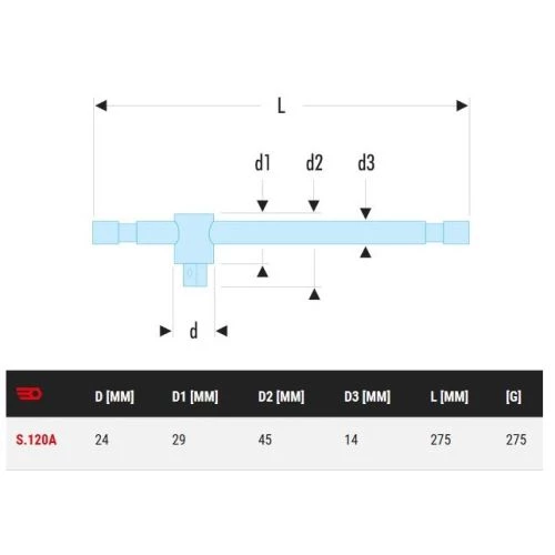 La tête de cette poignée 1/2” de Facom est dotée d’un frein qui maintient la tige coulissante et permet ainsi de l’utiliser comme une clé en T ou en L.
