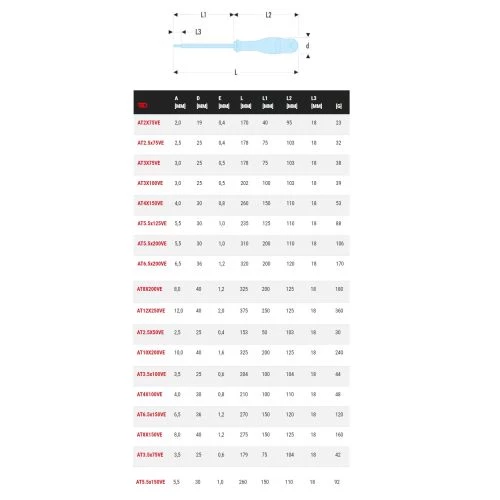 - Tournevis testé individuellement à 10000 Volts pendant 10 seconde VDE approuvé, en fin de cycle de fabrication